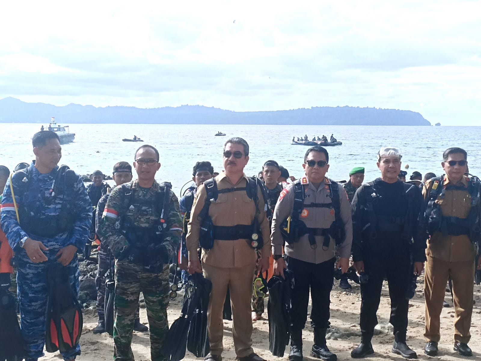 Bersama Pangdam XV/Pattimura, Kapolda Maluku, dan Kepala BIN Daerah Maluku, Gubernur Lewerissa mengenakan perlengkapan scuba diving dan menaiki perahu Landing Craft Rubber (LCR) menuju titik penyelaman.