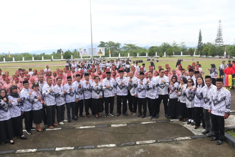 Menteri Pendidikan Dasar dan Menengah (Mendikdasmen) RI, Abdul Mu’ti dalam sambutannya yang disampaikan Plh Sekda Sabirin menyampaikan, ucapan selamat Hari Guru Nasional kepada seluruh guru di seluruh Tanah Air, baik yang mendidik di Kota-Kota Besar, satuan pendidikan yang ternama, maupun mereka yang mengabdi di pelosok desa, di satuan pendidikan dengan fasilitas, sarana prasarana pendidikan yang terbatas, ala kadanya.